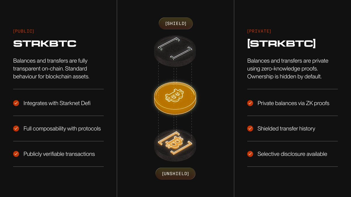 Just last week, Starknet dropped major privacy news with the introduction of strkBTC, a new wrapped Bitcoin token with built-in privacy capabilities. With strkBTC, users choose whether or not to shield their balances and transfers, and can participate in all DeFi on Starknet without publicly broadcasting positions, strategies, or finances.